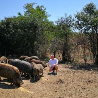 "Uzgojem te pasmine bavimo se već 8-9 godina kada smo nabavili dvije nazimice, a kasnije smo kupili i nerasta, i u međuvremenu se stado počelo širiti tako da smo lani dogurali do pedesetak grla. Dio smo prodali kao tovljenike, a dio kao odojke. Sada imamo 13 krmača, 1 nerasta, te oko 55 komada tovljenika, prasadi i nazimadi. To su vrlo otporne svinje, cijelu godinu i ljeti i zimi žive na otvorenom prostoru, nisu zahtjevne na ishrani, hranimo ih s kukuruzom, ječmom, preko ljeta dajemo im djetelinu i lucernu, evo rado jedu plodove divljih i pitomih jabuka, cijelo vrijeme ruju u potrazi za hranom", priča nam nositelj obiteljskog poljoprivrednog gospodarstva Mladen Škrinjarić, dok sa sestrom Mirjanom i bratom Jocom obilazimo ograđenu šikaru gdje te svinje obitavaju cijele godine.