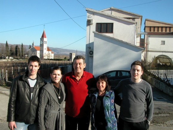 sinovi Ivan i Jure sa ženom ispred pršutane