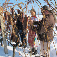 Zatim su se odvijale dvije ceremonije blagoslova vinove loze - crkvenu je predvodio svećenik Žarko Turuk i pučku članovi KUD-a Kamen Sirač, koje je predvodio Stjepan Jurajić. Tamburaši su svečanost u snijegom zametenom vinogradu obogatili pjesmom i glazbom. Svirka se čula i tijekom dana. Bogata berba, koju bi ove godine vinari željeli imati, simboliziraju slanina i kobasice povješane na žici. Pokaznu rezidbu loze je predstavio zaposlenik vinarije tehnolog Saša Lukić. Odrezana loza je bila smještena u posudu sa vodom. Kad nikne, vidjet će se kakav urod možemo ove godine očekivati.
