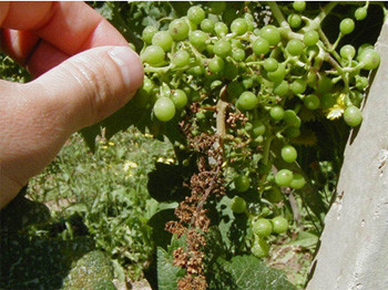 Pukotine na bobicama su idealna mjesta za ulaz botritisa (truleži) što čini dvostruku štetu na grožđu.