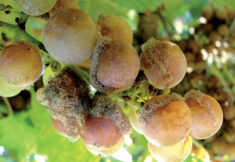 Sl.2. Pojava botritisa na škrletu nakon pucanja bobica zbog obilnih kiša u 2010. g.