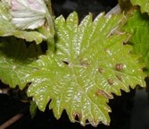 Zbog oštećenja glavnog pupa, izboj izlazi iz postranog pupa pa na lozi uočavamo dvostruke izboje. Lišće na kojem grinja siše gubi boju, deformira se i najčešće vidimo šarenu plojku lista sa tamnim uzdignutim rubom. Vrsta Eriophyes vitis dovodi do pojave poznate pod nazivom erinoza. Osnovni simptomi erinoze su pojava mjehurastih nabreklina na licu lista koje su isprva ljubičaste, a kasnije postaju zelene. Kada list okrenemo na naličju vidimo udubljenja ispunjena vunastom prevlakom. Osim ovog simptoma može doći i do skraćenja internodija, tvorbe tzv. „vještičjih metli“ i cik-cak rasta izboja.