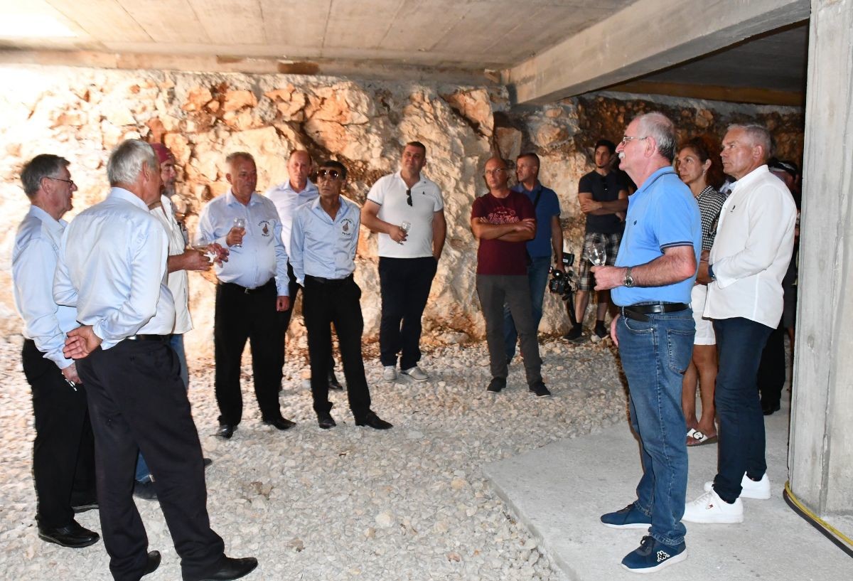 Site i napite uzvanike Bobanović je proveo kroz pogon sušenja smokava, proizvodnje ulja i vinariju s novim i kako je izvjestio Velimir Vele Brkić fascinantnim kamenim podrumom u izgradnji nazvanim "vinska katedrala u pećini".