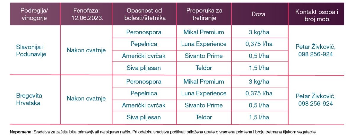 U vinogradima u kojima nije gotova cvatnja, a treba špricati, preporuka je Mikal® Premium i Luna® Experience. Naime, bolje je to učiniti u cvatnji nego zakasniti sa zaštitom vinove loze.