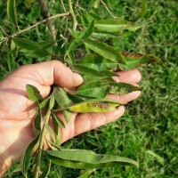 U vrijeme berbe badema u starijem nasadu javili su se znakovi pepelnice po vanjskoj ljusci ploda. U isto vrijeme, na mlađem nasadu zamijećeni su tragovi pepelnice po kori jednogodišnjih izboja.