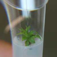"Trenutno u in vitro kontroliranim uvjetima imamo proizvodnju podloge za trešnju - Gisela 5 koja je namijenjena tržištu regije. Sadnice su virus-free, a čitava proizvodnja se odvija u strogo kontroliranim i sterlinim uvjetima", upoznaje nas Senad Dupljak, inženjer voćarstva i dugogodišnji voćar te pojašnjava način proizvodnje, "uzimamo pupove od matičnih biljaka našeg rasadnika i umonožavamo ih metodom mikropropagacije u kontroliranim uvjetima. U ovogodišnjem ciklusu cilj nam je proizvesti 200.000 sadnica i podloga spremnih za isporuku našim kupcima."