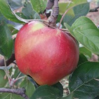 Dozrijeva od početka do sredine listopada. Plod je srednje krupan, okruglast, potpuno prekriven zagasito crvenom bojom s izraženim lenticelama, što ga čini atraktivnim.