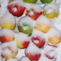 Na prvi pogled ova slika djeluje kao da su jabuke ušećerene u lijepom svjetlucavom snijegu. Slučajno smo jedne večeri ostavili jabuke vani, a ujutro se iznenadili kako lijepo izgledaju u snijegu koji ih je zasuo.