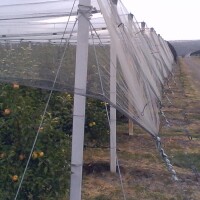 Naravno, svi su nasadi pokriveni mrežama, pa čak i devet hektara vinograda, s 12 sorti stolnog grožđa i tri hektara plosnatih bresaka, čija je domovina Španjolska. Voćnjak ima puno zaštitne opreme koja pomaže i u borbi protiv štetnika, a čuli smo da su betonski stupovi domaće proizvodnje.