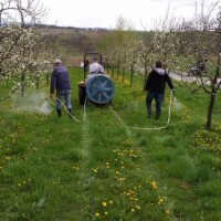 Ipak uz suradnju sa tvrtkom Pro-eco d.o.o. iz Novog Marofa i gospodinom Zdenkom, pronašli smo odvažnog poljoprivrednog proizvođača koji je bio spreman riskirati rod u svom voćnjaku radi eksperimenta i dobivanje rezultata koji bi omogućili intenzivno uzgajanje šljive na jedan novi način, bez upotrebe pesticida. Radi se o OPG Zvonimir Rajnović iz Požege kod koga smo na površini od 3 ha postavili test. Tretirali smo pola voćnjaka sa entomopatogenim nematodama u vrijeme otvaranja prvih cvjetova. Druga polovica nije tretirana s ciljem da se utvrdi kolika je šteta kada nema tretiranja. Cilj je dio da se tretira redni prostor voćnjaka neposredno prije izlaska imaga iz zemlje. Nematode bi inficirale insekte na njihovom putu prilikom izlaska iz zemlje. Inficirani insekti bi ubrzo uginuli, što bi imalo efekt kontrole.