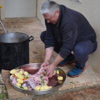 "Sve su ovo naši vridni ljudi. Dobri vinari i maslinari, poljoprivrednici koji nemaju vrimena za politiku i mlaćenje prazne slame. Oni žive od svog rada", kaže Dragan, koji se i ovaj put pokazao kao dobar domaćin. Ničeg nije falilo iako po namirnice nije išao u samoposluge i lance. "Blagujemo samo domaće. Kao i inače. Tukci i tuke iz slobodnog uzgoja stigle su iz Zemunika", otkriva Škrce dok su na trpezu pristizale delicija za delicijom.