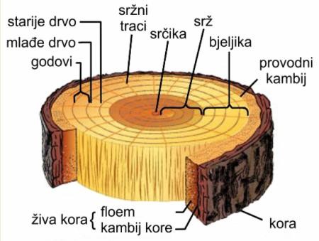 Vanjski sloj kore se sastoji od mrtvih stanica čija je funkcija zaštititi unutarnju koru (provodna tkiva floem i ksilem) od mehaničkih ozljeda i dehidratacije.